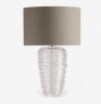 Porta Romana Thread GLB32 Table Lamp. Based on the same body shape as the Blob Lamp, the Thread Lamp has a softer feel derived from the delicate glass threading wrapped around the entire surface of the piece. The body of the lamp is made in a variety of stunning colours: olive, charcoal, amber, clear and turquoise , the threading is always in clear glass. The diffuser is available in a number of different colours, please see additional photos.