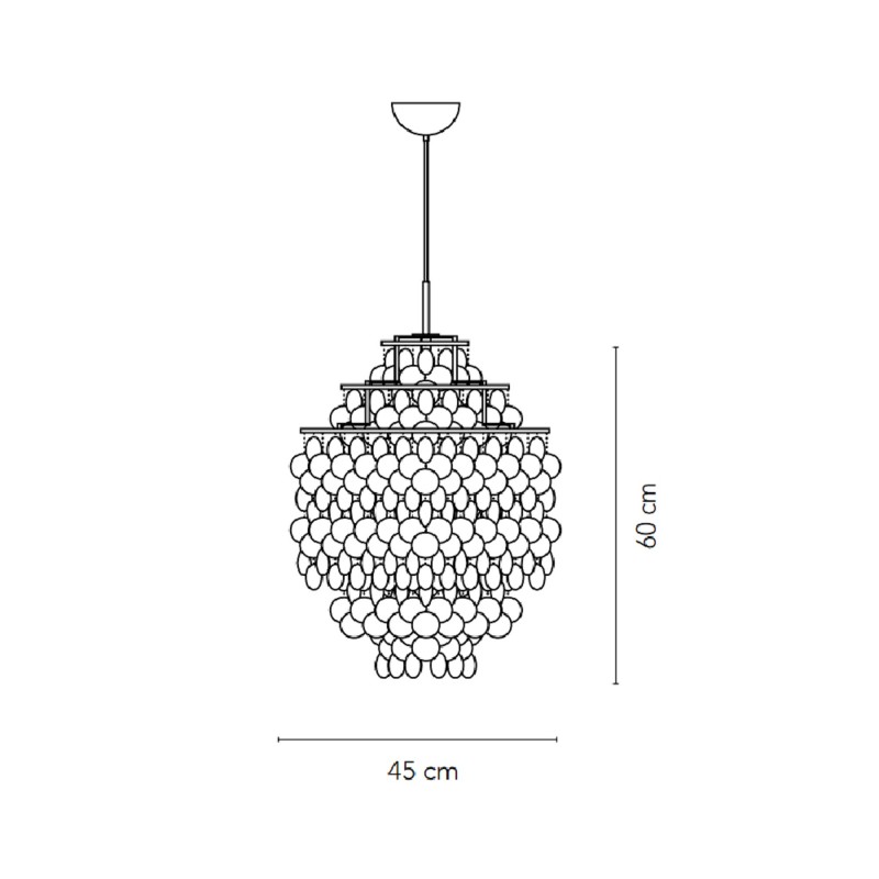 | Materials: | Seashell discs Stainless steel rings Chrome plated ceiling canopy |